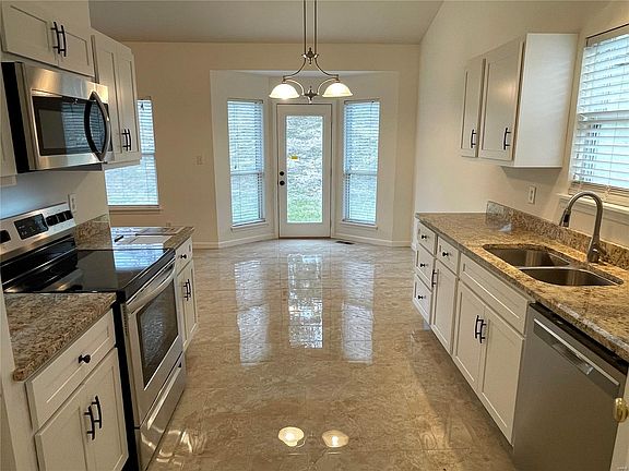 Do not miss this gorgeous 3-bedroom, 2-bathroom home in desirable Eureka. This beautiful brick ranch offers over 1,300 square feet of living space and a functional open flowing floor plan. Located in a cul-de-sac with an ideal oversized lot with an attached 2-car garage. Step inside for detailed craftsmanship and updates throughout. The kitchen features marble flooring, new granite countertops and custom kitchen cabinetry. The Great Room features vaulted ceilings with newly installed floors leading into the three generously sized bedrooms. Spacious basement is ready for your vision and future space expansion. Prime location within Rockwood School District. Only 3 minutes to Six Flags and enjoy less traffic with the house being North of Hwy 44. This house is in St. Louis County and not Jefferson County.