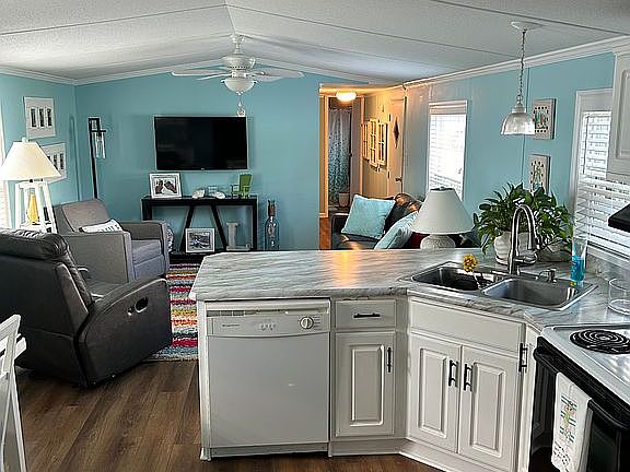 Nestled between the sound and ocean, this well maintained 3-bedroom, 2 full bathroom mobile home offers a blend of comfort, convenience, and endless family memories. Recently remodeled with large kitchen island, new and updated cabinets, open floor plan, large kitchen pantry, outside shower, storage building, and large deck over the home. Comes with microwave, stove, dish washer, frig/freezer, and washer /dryer. Easy and safe 10 minute walk to the ocean and 5 minute walk to the sound that offers flexibility and convenience for your beach enjoyment. Please call if interested in seeing or questions.