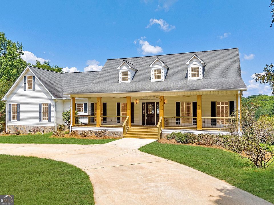 Welcome to this immaculate 4-bedroom, 2.5-bath modern farmhouse situated on 18 acres of beautifully cross-fenced pasture land with deep flowing creek. Enjoy the wide, covered front porch, spanning the length of the home with newly wrapped columns and wire porch railing. Enter into the entry foyer leading to the large DINING room and spacious LIVING room with gas logs. Heart of pine floors on the main level. The chef's KITCHEN has custom-built cherry hardwood cabinetry and gas range, double ovens, and a central island and breakfast area opening to the SUNROOM overlooking brand new deck. Adjacent to the kitchen, you'll find a WALK-IN PANTRY, a LAUNDRY room with a shower, a HALF BATH, as well as an enormous FAMILY-ROOM and separate OFFICE. Steps down to the double, side-entry GARAGE. This sprawling home features a MASTER-ON-MAIN suite, complete with a cozy SITTING ROOM or LIBRARY, providing a private retreat, master BATH and double closets. The upper level offers two additional BEDROOMS, full BATH, a STORAGE room, and a BONUS room. Rear hallway stairs lead to the STUDIO and PLAYROOM. Each bedroom includes its own bonus room, providing flexibility and privacy. With 2 brand new HVAC systems and meticulous maintenance, this home is in excellent condition, ready for you to move in and enjoy. Enjoy the outdoors from the new deck off the sunroom, where you will see Pear trees, Apple trees, Peach trees, Plum trees, Blueberries, Forsythia, a River Birch and Tulip Magnolia, Crepe Myrtle and the large Gazebo. The property also includes a 4-stall loft barn, cattle pen below barn and cross-fenced pasture with rushing creek the entire length. Property has 500yard gravel driveway (easement from paved N Akins Bridge). Property has strong 5G cell coverage.