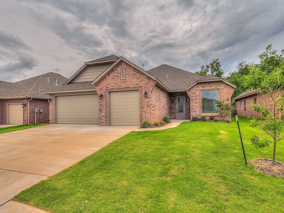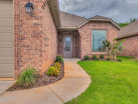 This nearly new home does not disappoint from the moment you walk thru the front door! Sought after open concept w/ huge picture windows which draw in the natural light. Great sized family room w/ stunning wood-like tile floors, high ceilings & crown moldings! The kitchen has stainless appliances, a 6 burner gas stove, a large island & exotic granite counters. The master bedroom is separate & the bath has a walk-in shower & whirlpool tub. Nice study w/ double french doors which also has a closet & could be a 4th bedroom. Beautiful lighting thru out & most are LED lights! Extra half bath is rare to find in this size home & price range! Builder upgrades are obvious from the tile selections to the taller baseboards & other finishes. The home also has a sprinkler & security system. Hard to find large back yard w/ mature trees in a newer home. The back patio is over-sized & is great for cook-outs & entertaining family & friends! Wonderful gated community in this central Edmond location!