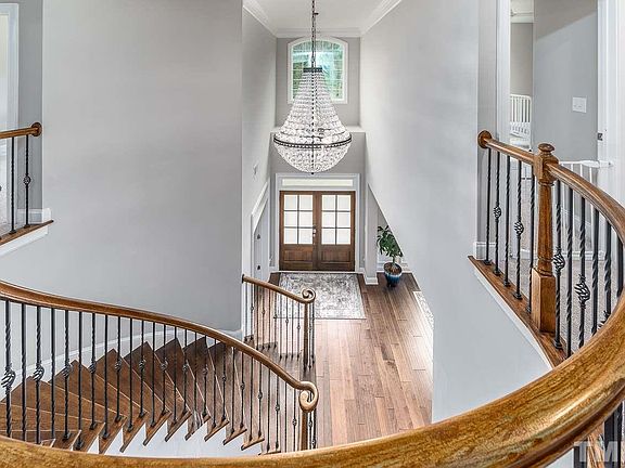 ABSOLUTELY GORGEOUS home w/tons of extras, almost .5 acre & 3-car garage. In popular Regency community in the heart of Cary, ranked one of the best places to live for business & relocation. First floor suite w/attached bathroom, breathtaking owner's suite upstairs w/fireplace. Custom chandeliers. Hunter Douglas blinds. Home theater w/ equipment included! Butler's pantry & white quartz counter tops w/smart living system. Screened porch overlooks interior lot landscaped with a fire pit. Community pool, too!