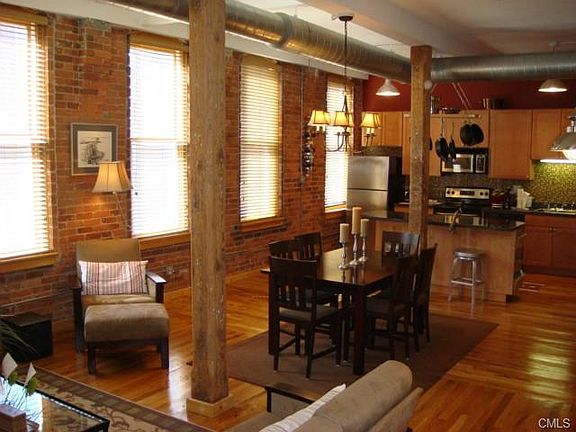 Gorgeous Townhouse Style two bedroom unit with second floor office. Unit offers numerous upgrades including two full baths, large kitchen center island, stainless steel appliances, soaring ceilings and exposed brick. Great Complex W/ tons of parking in gated secured lot. Walk to seaside park and University of Bridgeport, convenient to 95 and around corner from Harbor Yards, Bridgeport Arena or Ferry with an hour and half ride to Port Jefferson NY.