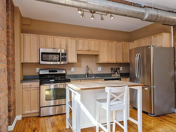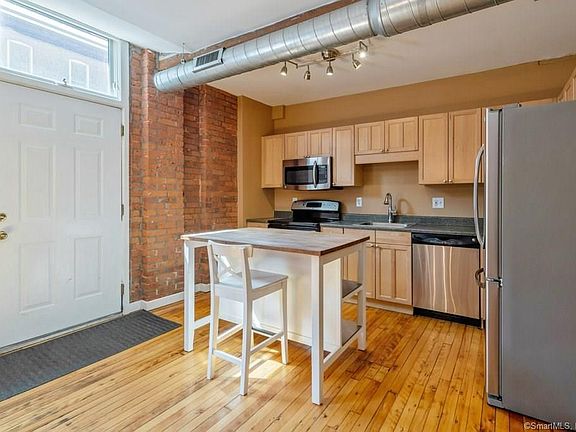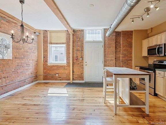 Historic warehouse converted modern residential. Exposed wood beams and duct work, ample recess lighting, updated kitchen, hardwood floors throughout and brick facade reminiscent of the time period intertwine old world and new. The main level includes an open concept kitchen and dining area, half bath and spacious living room. A walk down to the lower level has two generous bedrooms and a full bathroom. Coin operated washer/dryer in adjacent building. A parking spot is included within the community and additional street parking is available. Conveniently located a few blocks south of i-95, walking distance to Brewport, Harbor Yard, University of Bridgeport and Seaside Beach. A truly unique home you must see to believe!