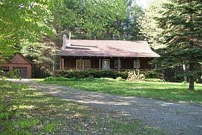 Topsfield-Rustic 3BR log cabin w/porch, lg. detached garage, garden, 2+ wooded acres on Lakeview Rd. only a few hundred feet from Musquash Lake. $98,500