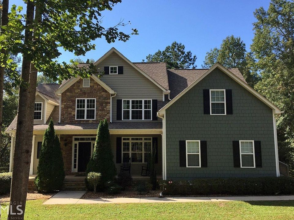 CRAFTSMAN STYLE - JUST LIKE NEW CONSTRUCTION, BUT READY NOW!!! Shows like a builder model home!! Beautifully finished 5 bedroom / 3 full bath home on a full unfinished basement, all sitting on approximately 10.5 wooded acres. only about 10 minutes to Downtown Newnan, Ashley Park shopping and restaurants, and I-85 exit 47. Freshly painted inside and out. Beautiful hardwood floors have just been redone. Owners Suite and second bedroom on the main level. Two story entry foyer and soaring ceiling family room with gas starter fireplace. Separate, eloquent Dining Room. Three bedrooms upstairs with double entry, shared bath - private sink areas with shared toilet and bath area. Home is still occupied.