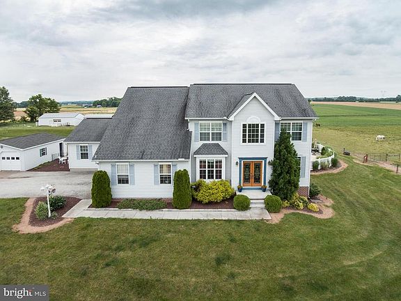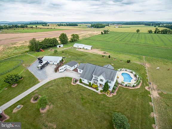 Awesome 30+Acre Equestrian Opportunity. This property is central to Horse Country while being close to the near famous Hanover Shoe Farm standard bred horse breeders and other Equestrian facilities. This home features 4 bedrooms which include 2 master suites (upper and main level). Very spacious rooms thru out including the kitchen with granite, back splash and island, soaring 2 story family room with beautiful "floor to ceiling" stone feature with pellet stove, office area or sitting area adjacent to FR, additional "family room" w/pellet stove, open 2 story entry foyer leads to a fabulous upper level with a open concept overlooking the LL Family room & there is a bonus sitting area which could be a well used space for TV viewing or a reading "sanctuary" . But lets not stop there....the outside is FABULOUS. Starting with an in ground pool enclosed w/vinyl fencing, huge concrete patio, adorable courtyard, 2 car detached garage, an additional OVER SIZED 2 car detached garage with area for workshop and extensive storage (electric & water source is a bonus). The horse barn has 4 box stalls and there are 5 run in sheds, 5 paddocks and the list just goes on and on. Its price is extremely affordable!!!