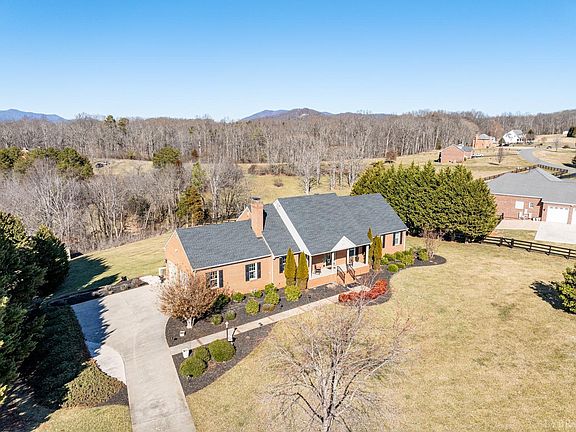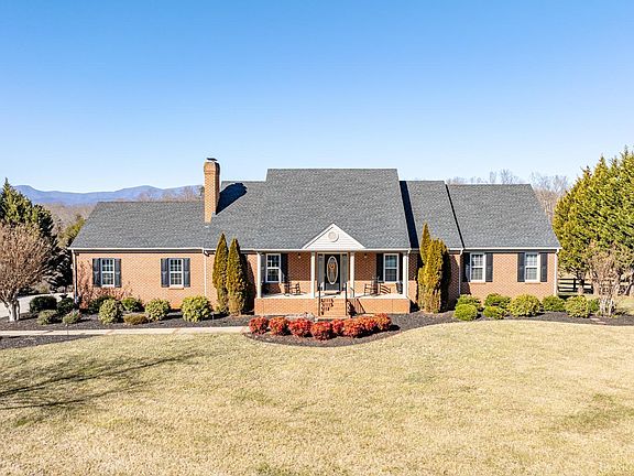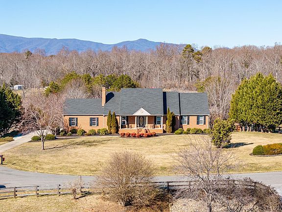 Spacious brick ranch situated in cul-de-sac with breathtaking mountain views of the peaks of otter. Abundance of off street parking plus 2-car garage. Main level open floor concept with beautiful hardwood floors, living room with gas log fireplace, updated kitchen with breakfast area leading out to screened in porch & deck. Covered rocking chair front porch. Oversized primary suite with double vanity, whirlpool tub & walk-in closet. Lower level offers recreational room with gas log fireplace, wet bar plus separate independent living area with separate exterior access with outdoor entertainment space. Independent living area includes full kitchen, living room, bathroom & 4th bedroom (no window) plus separate washer/dryer hook-up. Full walk up attic partially framed & ready for future expansion. Located in the heart of Bedford county in the Jefferson Forest school district convenient to both Forest & Bedford area shopping & restaurants. Roof approx. 2 years old.