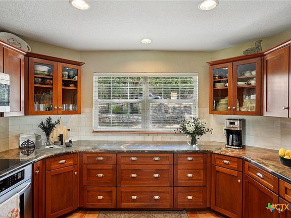 HUGE Price Improvement! Looking for a home in the heart of the Texas Hill Country? This is it! Close to Gruene, the Horseshoe, San Marcos, San Antonio, and Austin. Just minutes to get anywhere! Short term rentals allowed. This exquisite ranch-style home offers luxury, comfort, and million dollar views. Recently FULLY RENOVATED with a large addition across the rear of the home, this home is sure to check off all the boxes on your wishlist. Also comes with a 50 amp RV outlet!! The expansive primary suite is a sanctuary that features a cozy sitting room and a huge spa-like bathroom featuring an oversized jetted tub with ambient lighting and a huge shower. The tile work and new barn door truly "pop"! The kitchen features custom cabinets, new granite and backsplash, all new appliances, and a new sink with motion sensing faucet. Two generously sized secondary bedrooms and an additional full bathroom are on the opposite side of the home to ensure everyone has their own space. The secondary bath remodel features custom tile work, glass shower door, rain shower head and European toilet. Lighting fixtures have been updated throughout. The large covered patio offers amazing hill country views, perfect for entertaining or relaxing. Backing to a green belt and a golf course, this property provides privacy and tranquility that can't be matched. An oversized garage and a separate 14x16 lockage storage building on slab offer ample space for vehicles and outdoor equipment. This hill country ranch-style home is a rare gem, combining luxurious features with the natural beauty of the Texas landscape. Don’t miss the opportunity to make this your forever home. The roof with gutters and HVAC system were replaced 1 yr ago. Schedule a private tour today!