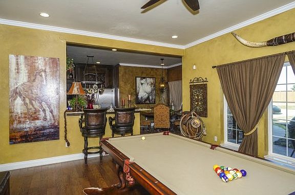 Gorgeous home on 3/4 acres in gated addition ONLY 8 minutes to Norman! You can't even get to the east side of Norman as quick as you can get here! This home has it all! 5 bedrooms all w/private baths, a downstairs media room & upstairs bonus room. The owners suite offers a private study & exquisite closets! Large yard features an 8 ft. privacy fence, gated drive, extra parking space in back, beautiful waterfall and covered patios! Safe room, hardwood floors, gourmet kitchen w/gas cooktop!