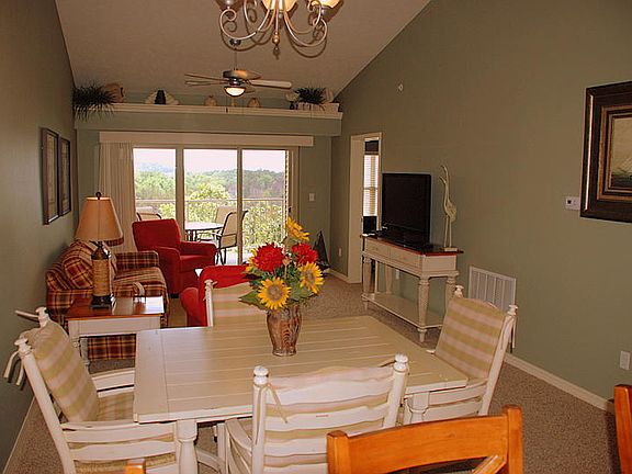 The living is easy in this two bedroom 2 bath penthouse on Table Rock Lake. Very close to State Park Marina for slip rental and all your boating needs, take Safari rd shortcut from Hwy 165, 10 minutes to Branson Strip, Stainless steel appliances, granite countertop, vaulted ceiling, could be kept on nightly rental for some income and a large pool with lots of deck space. Currently on nightly rental so it could take up to 90 days to close. All furnishings, housewares, electronics and artwork included. Linens and towels not included. Would make a great weekender.