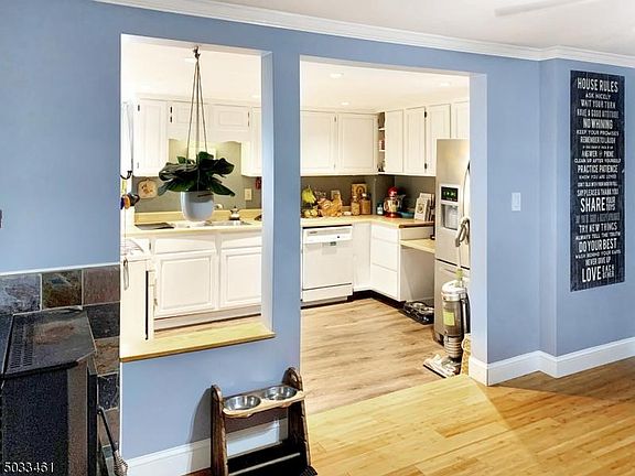 Adorable home offering hardwood floors, formal dining room, 2nd floor laundry room, exposed beams, pellet stove and much more. Large covered back deck, fenced in backyard, off street parking & large storage shed makes this home ideal for outdoor activities. Walk to town, Belvidere pool & Delaware River.. Rt 46/31/80 minutes away...."as is"