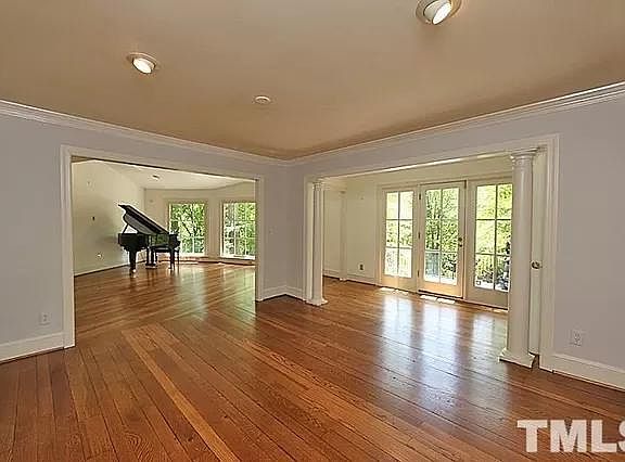 Enjoy this private home on large lot overlooking Crabtree Creek and Greenway walking trails. Hardwoods and spacious living room leading to expansive deck. Walk to North Hills. Short term rental available up to 6 months.