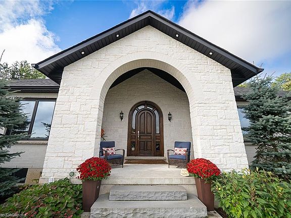 **A Private Estate Where Luxury Embraces Nature** Welcome to a rare masterpiece in the serene enclave of St. George. A custom-built bungalow that redefines refined country living. Perfectly placed on a private 1-acre lot and embraced by 10 acres of protected green space, this estate delivers over 7,000 sq. ft. of meticulously crafted living space, where timeless sophistication blends seamlessly with modern comfort. Step inside through a grand custom door into a dramatic foyer, crowned with 16-ft cathedral ceilings that set the stage for everything to come. The awe-inspiring great room, highlighted by a two-sided stone fireplace, opens effortlessly into a chefs kitchen designed for both function and flair. Premium appliances, endless cabinetry, and a versatile walk-in pantry (currently re-imagined as a cozy coffee nook), its a dream for both everyday living and entertaining. A formal dining room, casual breakfast area, and a sunlit sitting room round out the main living space, balancing elegance with warmth. The main floor hosts four spacious bedrooms, including a tranquil primary retreat with spa-like comfort. A designer laundry/mudroom ensures practicality meets style at every turn. Downstairs, discover the ultimate entertainers haven with over 3,000 sq. ft. of finished space featuring a custom wet bar, sprawling rec and games rooms, three additional bedrooms, and even a hidden cold room for extra storage. Outdoors, escape into nature with private walking trails, panoramic views, and a heated workshop. For car enthusiasts, the oversized garage with room for up to nine vehicles is nothing short of extraordinary. Just 10 minutes from Cambridge or Brantford, this home offers an unrivalled blend of privacy, luxury, and convenience. More than a residence its a sanctuary, a statement, and a lifestyle.