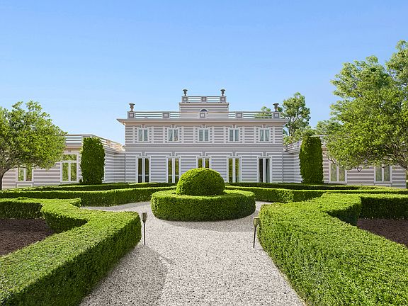 Spanning over 7,500 square feet, this extraordinary estate offers eight beautifully appointed bedrooms, six full bathrooms, and four powder rooms. Inspired by Lazienki Palace in Warsaw, Poland, this masterpiece seamlessly blends timeless elegance with modern sophistication. Situated on 1.5 impeccably landscaped acres, the property is accessed through a gated entry, unveiling a captivating 90-foot reflecting pond and a meticulously designed English garden. A collaboration among acclaimed architect Peter Cook, renowned builder RLW, and celebrated designer Thomas Britt, the home is a testament to exceptional craftsmanship and design expertise. Throughout the estate, open living spaces are immaculately decorated and showcase views across sprawling grounds. Th outdoor spaces are equally inviting, featuring a heated gunite pool and an 8-by-8-foot spa for ultimate relaxation. A reflecting pond serves as a breathtaking centerpiece, surrounded by expansive lawns and thoughtfully designed outdoor living and dining areas-ideal for hosting al fresco gatherings. Adding to the estate's allure is a 1,000-square-foot detached three-car garage, complete with a fully equipped gym, bathroom and a lower-level bedroom. This space offers the perfect balance of practicality and luxury, ensuring the needs of both residents and guests are met. Parking court can accommodate eight to ten cars. Providing a serene escape with an ideal south of the highway setting, this private retreat embodies modern convenience alongside unparalleled sophistication.
