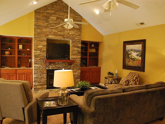 Beautifully decorated this condo is move in ready. Soaring cathedral ceiling in the living room with built in shelves, gas fireplace that features stacked stone all the way to the ceiling! Open kitchen with island and plenty of cabinet space. French doors lead to patio. Large Master suite features trey ceiling, double vanity, tile Jacuzzi/shower combo with huge walk in closet! Guest room is at the front of the condo and has it's own full bathroom that can be closed off to the bedroom and used for guests you are entertaining. Great location just minutes from everything the Pigeon Forge and Gatlinburg area have to offer, including the Great Smoky Mountains! Would make a great primary residence, vacation home or place on overnight rental program. Being sold fully furnished with upscale furnishings!