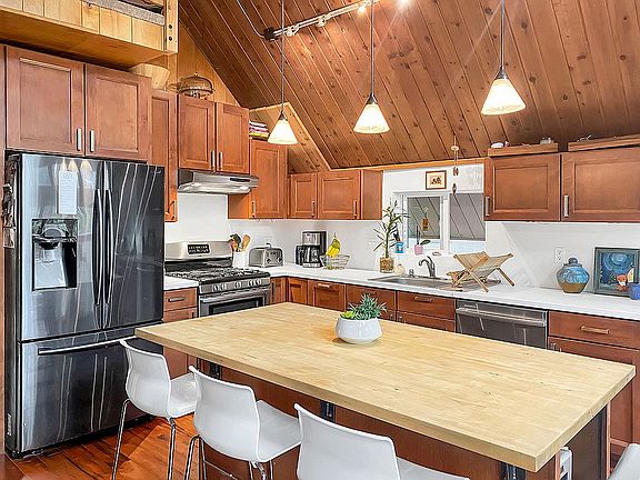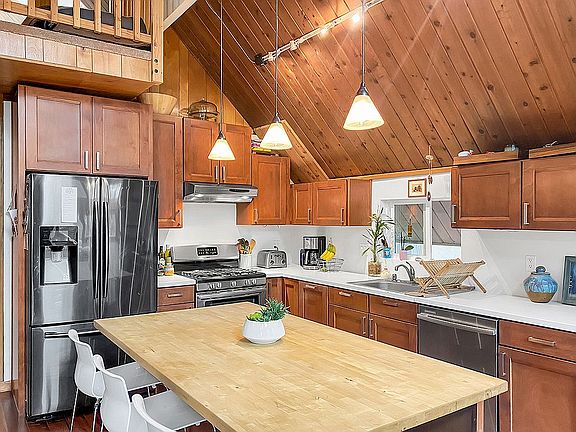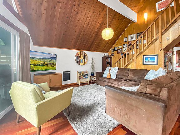 Charming 3 Bedroom home with bonus rentable studio apartment above the garage. The main home is warm and inviting with vaulted ceilings and south facing windows that bring in light all day long. New EPA pellet stove keeps the home warm and toasty. Fenced back yard with seasonal stream and open space. Lots of outdoor living with a big deck for grilling and relaxing. The property has an extra detached office behind main house that is quiet and private, perfect for working from home. The oversized one car garage has tall ceilings with plenty storage, plus an exterior carport for all of your toys. Property has a bonus luxury studio apartment above the garage that has been renting for $1,250 per month. The private Studio has a south facing deck, newer appliances, wood flooring, heated floors in the bathroom, washer & dryer in the garage, wiring for surround sound and dimmable lighting throughout. The square footage does not include the office or studio apartment. Centrally located within a block of the free public transit, walk/bike to the Post Office, Vons, schools, shops and Restaurants. Call to see this home today!