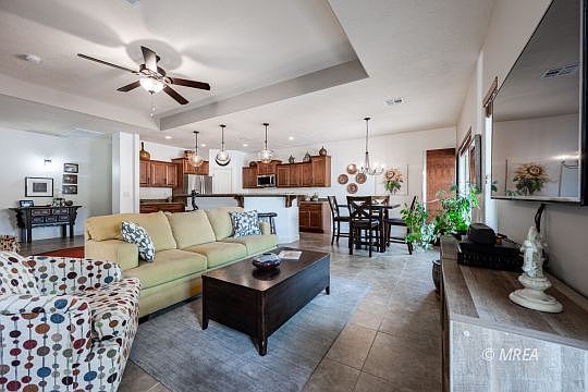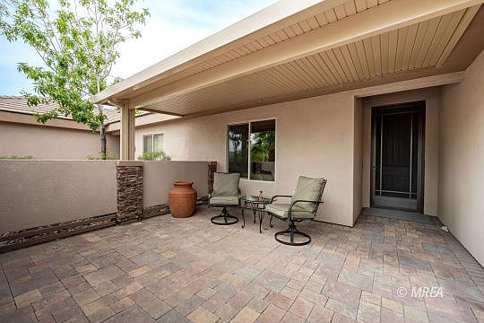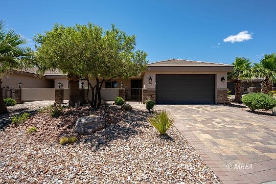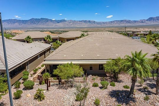 This spacious town home is located in Calais Town Homes, a quaint community north of I-15. Situated in a cul-de-sac, this exquisite home is within walking distance to the Falcon Ridge Golf Course and Scotty's Grill. The location is ideal for a primary residence, second home or a vacation rental. The income potential is amazing. If you love to golf or simply dine from Scotty's patio overlooking all of Mesquite, this is for you. This gorgeous town home is beautifully appointed throughout and the floor plan is desirable with an open floor plan and two large master suites. The bedrooms are on opposite sides of the home and the bathrooms are luxurious with granite covered vanities, tiled walk-in showers and roomy closets. The den/office has glass french doors and can also be used as a bedroom. The kitchen has a lengthy raised bar and high end stainless appliances. The home has large tile throughout and new carpet in the bedrooms. The paint tones are neutral and the light fixtures are attractive. The covered front courtyard and back patio maximize the outdoor living space and the mountain views are exceptional. Pavers cover all outdoor surfaces and the garage has an extra 8' in depth.