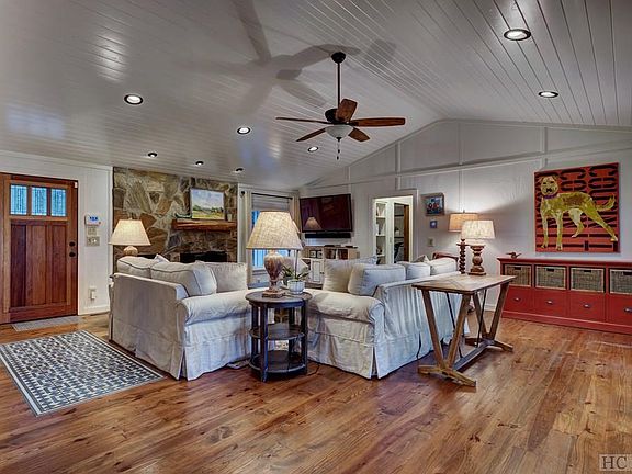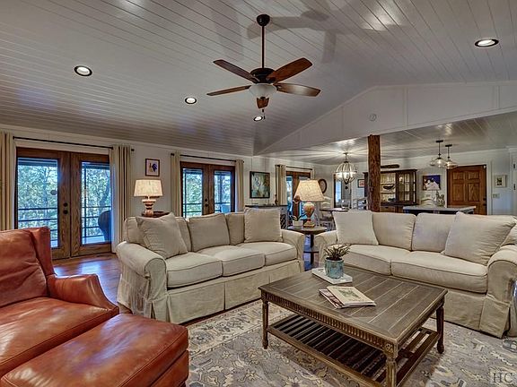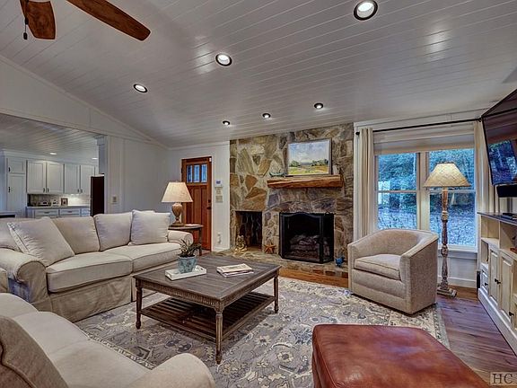 An updated and beautifully furnished one level home within the town limits of Highlands. Open living/dining/kitchen floor plan with primary bedroom suite on one side and 2 bedrooms on the other offering privacy. Masonry fireplace with gas logs in the living room. Large screened porch across the back with new retractable vinyl windows to extend the usable season. Wood floors and ceilings throughout, central heat & air, encapsulated crawl space and a one car garage. There is a great back yard area for a garden space or firepit. This is truly turn-key and is ready to go.