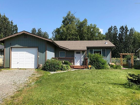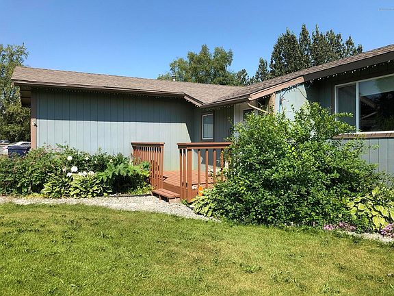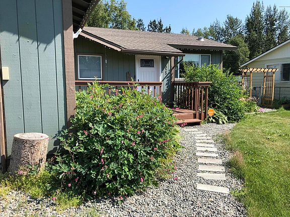 Charming ranch-style home in downtown Palmer! Features incl updated BA and kitchen with huge farmhouse sink & sliding barn door to pantry/laundry rm; bonus rm that could be used as a den or playroom; large fenced backyard with playhouse & swing set, raspberry patch, mature shade trees, and flowers galore! Walking distance to elementary schools, library, grocery store, parades, parks, and trails.