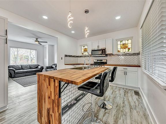 Renovated from top to bottom, this gorgeous property sits on a double lot in Canonsburg and is ready for someone to call it home. Walk inside and immediately be greeted by an open concept kitchen with butcher block counter tops, stain glass windows and brand new stainless steel appliances. Luxury vinyl plank flooring runs throughout the first floor. Both the living room and master bedroom are equipped with electric fireplaces. Master bedroom features a bonus room ensuite, a MASSIVE square ft walk in closet and a gorgeous full bathroom built with stone, glass and marble mosaic and has not one but TWO water fall showers. TWO laundry rooms (one on the main floor and one on lower floor). Full bathroom located on each floor! New hot water tank, furnace, plumbing, A/C, ductwork and gas lines, as well as updated electrical. Sidewalk is sloped to be able to add in a parking pad for off street parking. Property could easily be converted into two units (up and down).