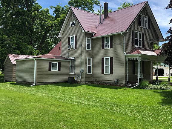 Are you looking for a home with space? Wanting a large yard, have a love for older homes with charm and character? Looking for a small town feel in a warm, inviting popular community? You don't want to miss this property! This 2,557 sq ft home has 5 - 6 bedrooms, 2.5 baths and sits on a double lot. Many updates including paint and flooring throughout, vinyl siding, new metal roof on house,garage and out building, new central a/c and new furnace. Main fl laundry for convenience and large office that could be an additional bedroom. Working pocket doors and formal dining room as well as open staircase in foyer and covered front porch are just a few of the features that give this home a charming feeling. Wonderful lot with many mature trees, and all appliances convey.