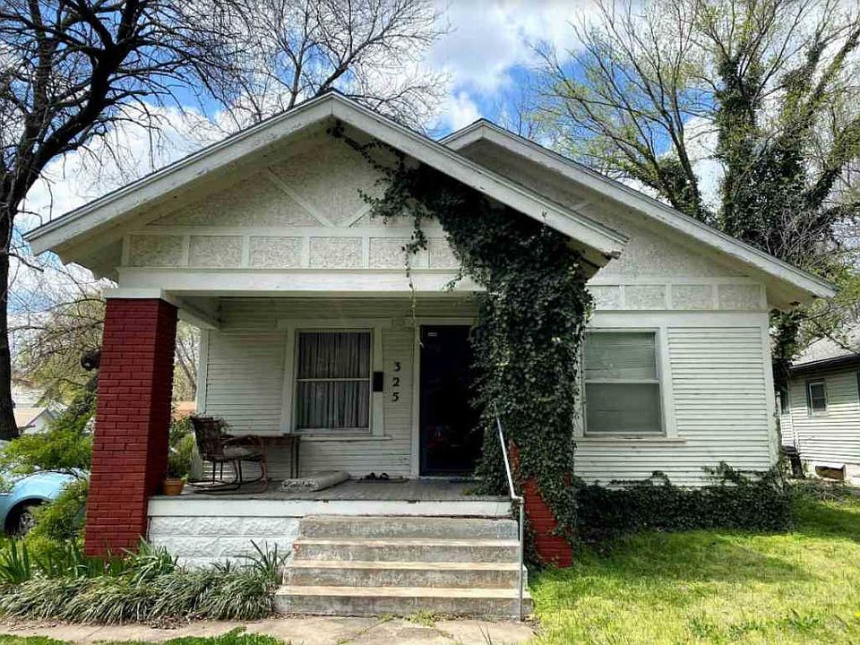 A large covered porch welcomes you up to this 3 bedroom, one and half story home. High ceilings and gorgeous wood trim highlight the spacious living room with charming built-in cabinets elegantly separating the formal dining area from the living space. The updated subway tile backsplash and stylish cabinets give this kitchen a modern feel plus ALL appliances STAY saving you time and money! A versatile back room provides multiple options for usage including pantry storage, craft area, or additional eating area! Nearby, main floor laundry eliminates the dreadful trips up and down from the basement and is tucked back from the room, making it easy to add a curtain and conceal! The sizable full bath features an updated pedestal sink and is shared by the 2 bedrooms closeby, both with ample living and closet space. Filled with natural light, the upper level makes the perfect master suite with many windows and beautiful exposed brick. Tons of storage space is provided in the unfinished basement as well as a little workspace. Out back, the one car garage is equipped with extra covered storage space perfect for lawn equipment and tools. This great home won't last long, give us a call today!