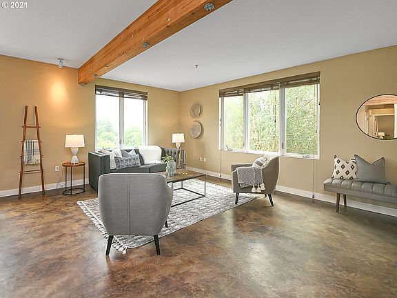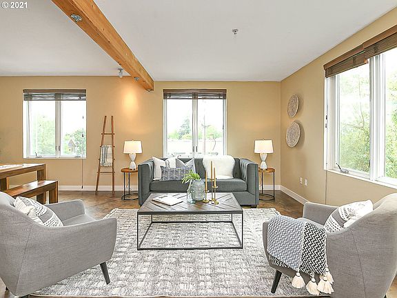 Stunning end-unit penthouse filled with light! Modern and green design featuring open living, exposed beams,radiant heat concrete floors, updated kitchen, Restoration Hardware lighting. Sustainable Perform- Wall construction-high tech and energy efficient, Largest unit with two roof top terraces and amazing city views! Large master plus family/ office/ flex space up. Fantastic location a stones throw from New Seasons, Vancouver/ Williams corridor,easy access to downtown. 1 deeded parking space.