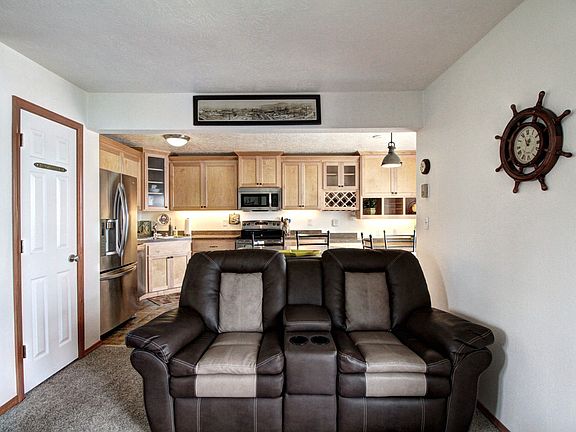 Riverside with river view. Remodeled ground floor unit, Stainless steel appliances, new carpet, new custom cabinets in the kitchen, New front loader washer and dryer, fireplace and two baths. Plenty of living space. 50' boat slip can be included for $15,000.