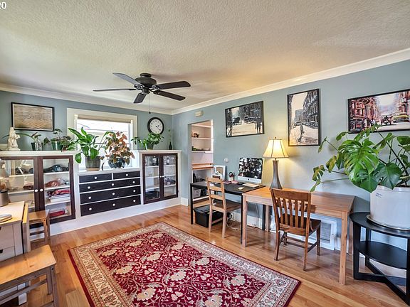 Adorable and cozy, this home is perfect for someone looking for that house that is just right. Step onto the porch with its curved roof and into the living room with warm and inviting hardwood floors. Built-ins grace the wall of the dining room as you walk into the kitchen. The simple kitchen has an easy flow and allows quick access to all of your necessities. The lovely deck is entwined with established kiwi plants and is a great place for hosting small gatherings. [Home Energy Score = 7. HES Report at https://rpt.greenbuildingregistry.com/hes/OR10185821]