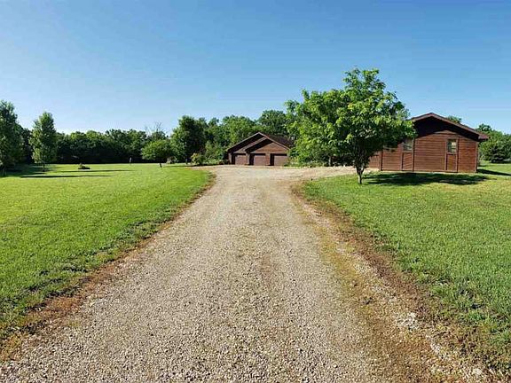 Opportunities to own a unique home like this rarely come along! Custom built half berm on 10.23 acres w/soaring wood-beamed cathedral ceilings, open layout & spacious rooms. Features: master suite w/office loft & walk-in closet/concrete safe room, kitchen w/breakfast bar island, geothermal flooring, 3-car garage/40x28 heated & cooled shop/storage shed, mature landscaped yard w/pergola, private driveway, fire & horseshoe pit & shaded patios. Meticulously maintained & quality built! New roof/gutters to come!