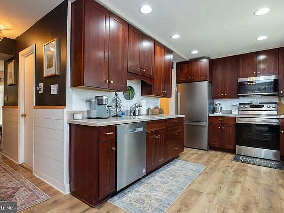 Welcome to your new home in the heart of Leesburg, VA! This spacious townhome is packed with stylish upgrades and features that make it one of the most desirable properties in the area. Step into the kitchen, where you'll find 42-inch cherry cabinets, sleek Corian countertops, and all new stainless steel appliances. The eat-in space, complete with a bay window, is perfect for casual meals. The separate dining area, featuring a modern chandelier and new LVP flooring, seamlessly flows into the rest of the main level, creating an inviting space for entertaining. The main level has new LVP flooring throughout. A cherry hardwood staircase leads to the upper level. The spacious primary suite includes a ceiling fan, TV hookup, and an attached, updated bathroom with a sliding barn door. The elegant wainscoting in the bathroom and a large closet, add a touch of luxury. An updated hall bath with floor-to-ceiling trim detail and two linen closets serves the additional bedrooms. The fully finished basement offers even more living space. It includes a laundry area with washer and dryer, plus extra room for a freezer or fridge. You'll also find a movie theater room, office/learning space, and two double-door storage closets. Out back, the concrete patio with a covered pergola is perfect for outdoor gatherings. The fenced play area with an access gate is great for kids and pets. Located close to Dulles Airport, the Metro, and all major commuter routes into DC, this townhome offers unbeatable convenience. Enjoy the local shops and restaurants in the charming town of Leesburg while living in one of the community's largest square footage floor plans. Don't miss out on this fantastic opportunity to own a spacious and beautifully updated townhome in Leesburg, VA. Schedule your tour today and make this incredible property your new home!