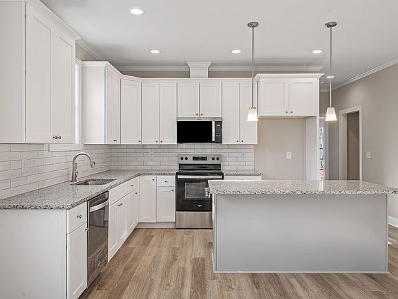 A little land goes a long way today!! This adorable 3 bed 2 bath ranch is ready for its owner. As you park you are welcomed by a covered front porch with French doors. Vaulted ceilings make your open concept living area feel that much larger, with picturesque windows overlooking the rear side of the property. Stainless steel appliances accompany fresh white subway tile and granite counters throughout to provide the elevated look you're expecting with soft close cabinetry we all enjoy. The kitchen island provides both the opportunity to sit and enjoy a meal as well as plenty of deep storage for your kitchen items. The primary bedroom offers its own bathroom fitted with dual sinks, a walk in shower, a separate water closet for privacy as well as TWO closets with built in shelving. With community access to the Cape Fear river, this is the place you want to be if you're looking for a laid back lifestyle. Preferred Lender is offering UP TO $2,000 towards closing cost!! John Wilkerson ( Revolution Mortgage ) 919-285-6238 Builder is also offering a generous $5,000 USE AS YOU CHOOSE incentive.