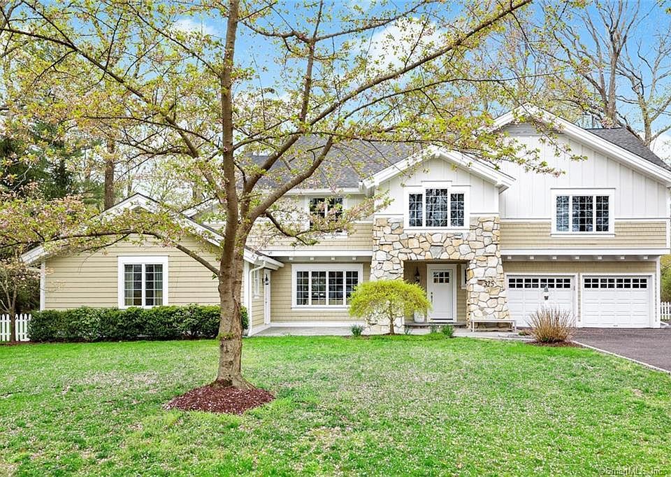 Welcome home to this expansive European-style colonial! Nestled in a convenient and desirable Darien neighborhood, this home was fully renovated and expanded in 2004 boasting 5 bedrooms and 4 full baths. The living room features a beautiful stone fireplace, while the family room has vaulted ceilings with an abundance of natural light. In addition to the flow of the living, dining and family rooms, which are great for entertaining, the main level has a private home office, bonus room and separate guest/nanny suite with private entrance. The eat-in kitchen features custom European modern cabinetry with a spacious center island, two wall ovens, wine cooler, beverage drawers and plenty of pantry storage. The breakfast nook has a built-in workstation with vaulted ceilings and skylights. The French doors open up to the backyard flagstone patio–a perfect spot to enjoy an endless summer of fun in the fenced-in level backyard. The primary master bedroom is a generous size with vaulted ceiling and ample natural light that filters through the windows. The suite is completed with a large bathroom with double vanities, a jetted tub and shower, and walk-in closet with organizational storage. The second floor continues with three other large bedrooms, a full bathroom and an inviting laundry room. This turnkey colonial has everything you are looking for!