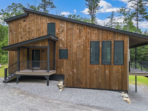 Newly Constructed Modern Chalet in the Mountains of Western Maine. This breath-taking 4 bedroom, 4 1/2-bathroom modern chalet is nestled in the mountains of western Maine, offering a bright and fresh feeling. The main level features a half bath, the primary suite with a walk-in closet, and an open concept kitchen and living area that flows seamlessly onto the covered porch. Step out onto the porch and feel as though your living space continues right into the White Mountains. Upstairs, there are two bedrooms each with their own full bath, plus an extra room that could be used as an office, yoga studio, or anything else you can dream up. The walkout basement includes a spacious mudroom, laundry room, fourth bedroom, full bathroom, and large entertainment room. This property has access to the Bethel Community Forest trails for hiking and biking directly from the backyard. Sunday River ski resort is just 11 minutes away, and downtown Bethel with all its shops and restaurants is only 5 minutes away. This location is unbeatable for all-season access to all the things Maine has to offer!