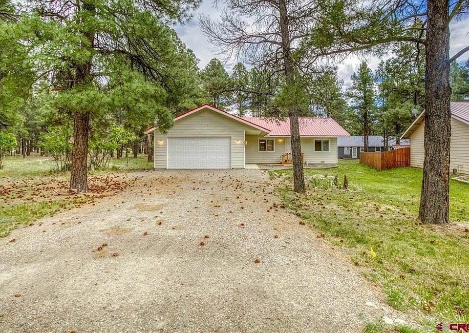 Welcome to 325 Oakwood Circle, a 3 bedroom, 2 bath home sitting in Lakewood Village of the Pagosa Lakes area in Pagosa Springs, Colorado. At just under 1500 square feet, this home is nestled amongst tall pine trees, giving it a great comforting mountain town feel. The open floor plan separates the primary bedroom from the other bedrooms, allowing for the family to come together and also remain private. A big backyard provides a great area to enjoy the mountain air and relax, with a 2 car garage to keep the adventure toys and cars safe. With a little love and care, this home could be perfect for a full time residence or for a rental investment. New carpet being added to living room and bedrooms, call to schedule a viewing today!