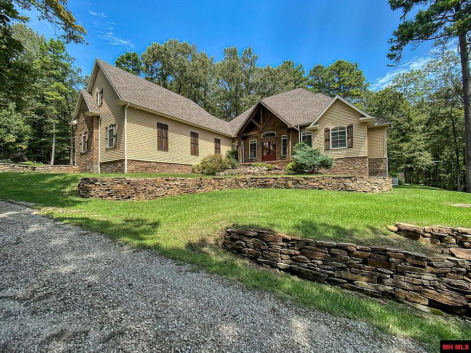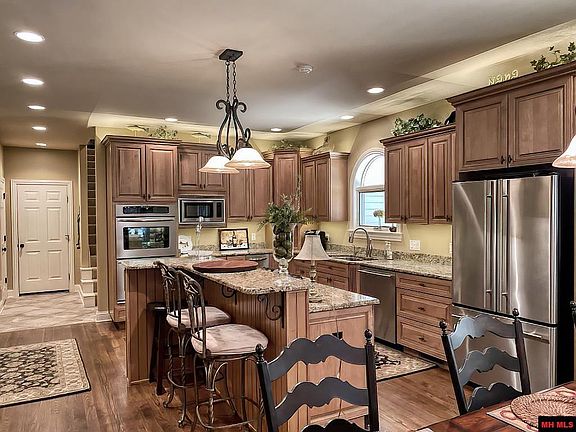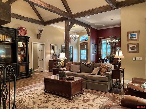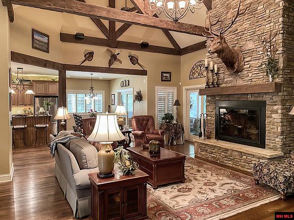 This jaw dropping McArdle built custom home WOW"S in every way. A timber framed covered front porch greets you at the end of a quiet cul-de-sac. 3 bedrooms/3 full baths, 2 half baths in a spacious 3400 SqFt. Open floor plan with vaulted ceilings and exposed beams extracted from an old Amish barn built in 1880. Custom stone wood burning fireplace is the center of your attention. Large kitchen with butler area & island. Spacious master suite with heated floors in bathroom. Office/study, formal dining room, game room with kitchenette, beautiful screened in patio, exterior kitchen w/pergola & so much more! Situated on 2.5 acres, minutes from the handicap access on the Majestic Norfork River. Won't last long!
