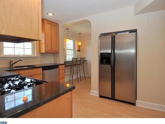 Updated charming classic colonial home in sought after neighborhood in walk-to-Wayne location in Radnor Township. New Kraftmaid kitchen with granite countertops, stainless steel appliances and breakfast bar. Large living room with hardwood floors and arched entrance to formal dining room with built-in shelves. New sliding glass door to new expansive deck overlooking picturesque backyard. Large master bedroom with closet and access to floored attic, three spacious additional bedrooms with updated hall bath. Freshly painted, hardwood floors throughout, Hunter Douglas wood blinds throughout. Full basement with new windows, play/recreation area, laundry and access to rear yard. Newer windows, new shutters, new gutters and downspouts and new exterior lighting and a wonderful large lot with beautiful landscaping make this home a gem. Convenient location is walking distance to town of Wayne for dining and shopping, train and farmer's market and to all major highways for communting to Center City and the airport.