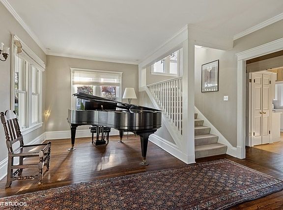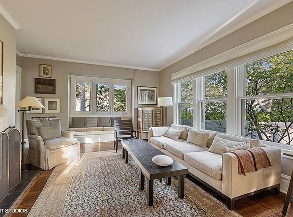 Utterly charming, sunny home in idyllic east Kenilworth locale in picture perfect setting. Large bright rooms - all with charm galore! 1st floor foyer leads to large living room with fireplace, dining room and den plus cheery kitchen with breakfast table area and adjacent office. 2nd floor offers four sunny bedrooms including master suite with sitting room, decorative fireplace and direct access to full bath. Three add'l bedrooms on second floor, cozy office and add'l Jack and Jill bath. 3rd floor retreat is perfect for studio, office or add'l bedroom. Unfinished basement is clean, tidy and offers loads of bonus space. The front lawn, patio and flower beds combine with delightful backyard get-away to create an outdoor oasis on this lovely, tranquil lane in prime east Kenilworth.
