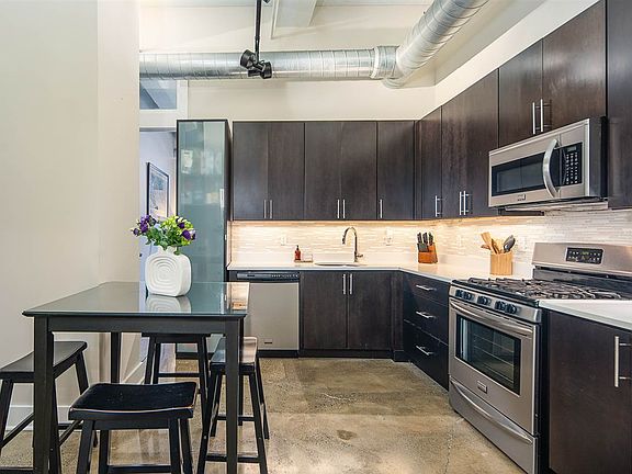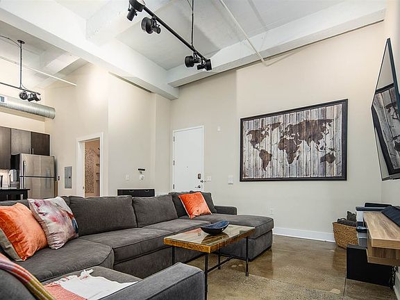 The perfect balance of chic industrial, and modern design. This 2 bed/1 bath features soaring 14+ ft. ceilings, exposed ductwork, original polished concrete floors, central A/C and dimmable lighting in every room. Enjoy the completely remodeled kitchen (2014) with sleek designer touches, including marble and glass backsplash, under-cabinet lighting, Caesarstone countertops, stainless steel appliances and DROP water/ice filtration. Both bedrooms are large enough for king-sized beds, and both have massive windows outfitted with Hunter Douglas insulated blackout shades, modern ceiling fans, spacious closets and extra storage space above. Beautiful tile-work in bathroom completes the look - with sleek linen-finished tiles complemented by metallic and mosaic accents. Enjoy all The Heights has to offer right outside your door: Choc o Pain and Low Fidelity along with the many new cafe's, coffee houses, and restaurants. And just a 7 minute walk to Riverview Park - providing unparalleled panoramic views of NYC, and home to the Riverview Farmer's Market: open every Sunday from May thru October. The Trolley Lofts is in an ultra-convenient location for easy access to NJ Transit buses (to Port Authority NYC, and to Journal Square and Hoboken PATH stations). Or simply walk down the stairs to Hoboken and the LightRail- just minutes from your front door. The Trolley Lofts also feature bike storage for all owners and washer/dryer rooms on every floor. Jersey City Tax Abatement in place until July 2032. The Heights revitalization is HOT and this condo is right in the heart of it ALL!
