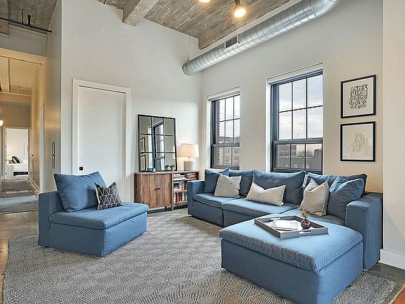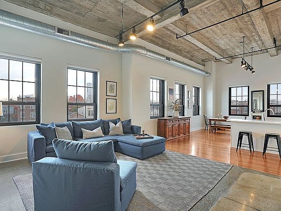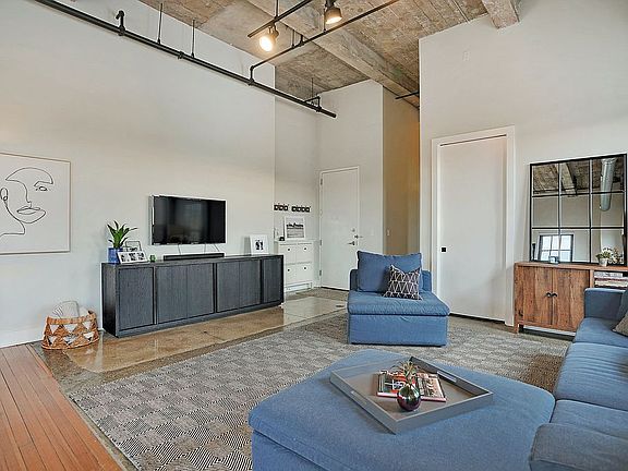 Historic Landmark boutique style "Trolley House Lofts" with soaring 14 feet concrete ceiling that features exposed ductwork, original polished concrete floors, 1343 sq feet of living space with Southwest exposure and oversized windows drenched with natural light. Unit features 2-bedroom 2 bath, stainless steel appliances along with a breakfast bar with quartz counters and opens to a spacious dining area. The large master bedroom features an accommodating square layout with double closets with extra storage on top. This chic loft features, original hardwood floors, central air conditioning and heat and an ideal layout. Washer and dryer on every floor. One covered corner parking space included. Located in the best Jersey Heights neighborhood that is brimming with activity. Additional features include a modern video intercom system, bike room, and a newly installed roof w/warranty. Palisade Ave is home to the Heights' best local spots and groceries, shopping, parks & playgrounds, farmer's market, music venues, restaurants and NYC transportation are all within walking distance. Tax abated until July 2032. Extremely low taxes.
