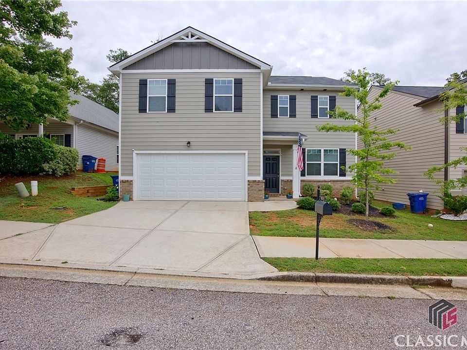 Opportunity awaits for your new home in Jennings Mill Corners. So convenient to everything Athens has to offer in terms of shopping, dining, UGA and recreation. Home is like new! Foyer opens with a drop zone for back packs and coats. To the right is a Dining Room and straight ahead is the Kitchen and Great Room with an an electric fireplace. Kitchen features an island with bar seating as well as a breakfast area, Granite countertops, subway tile backsplash, stainless appliances included and an amazing walk in pantry. Easy to care for Mohawk laminate wood flooring is on the entire main level. Just outside is a patio and large private back yard awaiting your outdoor activities. Upstairs is a loft area currently used as a play area but could function as an office, reading nook or exercise zone. The spacious Primary Bedroom with tray ceilings has a great closet and ensuite bath with two vanities, soaking tub and separate shower. Three additional bedrooms, the second full bath and the laundry room complete the second level. Upgrades to the home include two Nest Thermostats, a premium lot, cabinet upgrade package with crown molding, ceiling fans in the Great Room and Primary Bedroom, gutters and Solar Panels ($35,000). Additional energy improvements include additional attic and duct work insulation and a water heater blanket. Come see this easy to maintain home in a great location today!