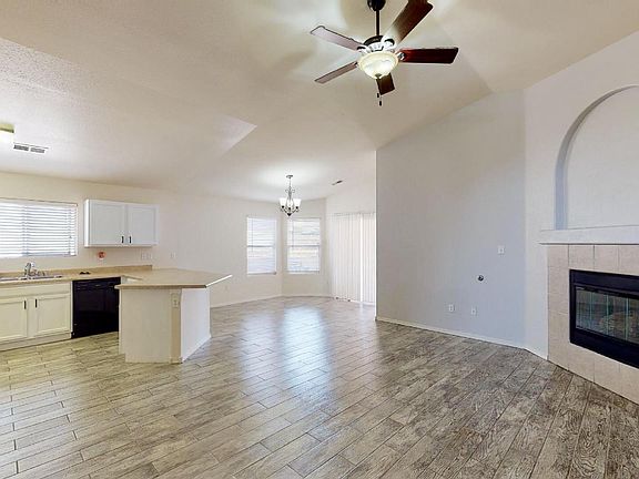Beautiful contemporary Home in Rio Rancho3 bed 2 bath 2 Car Garage with Fresh paint, fireplace, vaulted celling contemporary tile