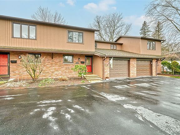 Gorgeous townhome in Brighton with Penfield schools. Rarely available, easy lifestyle. Very convenient location, minutes to everywhere. Maintenace free. Newer windows, very quiet interior. Granite counters, patio with electric awning, custom built-ins in living room, gas fireplace, view from living room is like being in a park. No one behind this townhome. Epoxy garage floor. NEW: roof, carpeting throughout, stackable washer and dryer on second floor, entire interior painted, bathroom vanity, all light fixtures, counter depth refrigerator. all interior doors, basement refinished, smoke alarms. HOA is self-managed, only 6 units. close to expressway, shopping, downtown, parks, and hiking trails, Viewings begin 4/9, negotiations will take place at 5:00 PM 4/14.