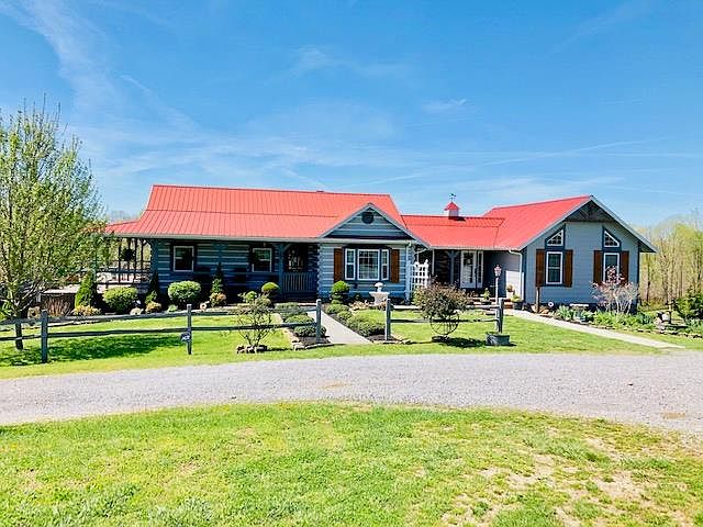 Custom-built Jim Barna log home with large master suite addition, living room w/fireplace, large remodeled kitchen with copper sink - all stainless appliances - custom bar, main level utility area with built-in organizers, coat rack & laundry sink! You will love the large master suite with exposed hand-hewn beams - wormy chestnut rustic barn doors - large walk-in closet - master bath with tiled shower - double vanity - clawfoot tub - chandelier & more! Full finished basement w/walk out entrance, family room, extra utility room, 3rd bedroom and bath.