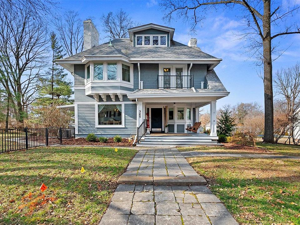 Arts and Crafts style 6 bedroom 4 1/2 bath home has all the charm of the past with the modern-day upgrades. Updates include: Roofs, Lateral Line, Stacks, Electric, Windows, HVAC zoned-system w/heat pump, hot water re-circulating pump, 2 full bathrooms added to home, painted exterior, new driveway, blown in-wall insulation, 2 ventless gas fireplace inserts. You will find abundant natural light throughout the house. The kitchen has custom cabinetry and Paperstone countertops, dual dishwashers and newer appliances. In the dining room there is an original built-in cabinet and fireplace. The primary suite on 2nd floor features 2 closets, full bath, and a sitting area with balcony. The 3rd floor is a fantastic space with a full bath and a copula with clerestory windows. Oversized mature lot is .74 acres, located in central Webster Groves and is within walking distance to local shopping, restaurants and schools. Make it your New Home for the New Year. COOL: 14 SEER+