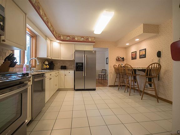 4b/2.5 bath updated colonial, refinished HW Flrs, updated tile baths ,remodeled kit w/granite and Whirlpool Gold SS appls.LR/DR crown moldings 20x20 FR/Gas FP & Cathedral Ceiling W/sky lights & wet bar, newer HVAC,newer roof,racedeck gar floor.All closets custom designed by Closet Crafters, large deck and private back yard abuts forever wild area. Professionally landscaped. snow blower, lawn mower and shed full of yard tools all included. Partly Fin Base. Home theater and wall mounted TV's negotiable.