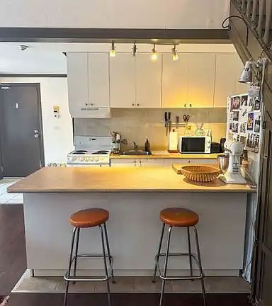 Stunning two-storey loft with soaring high ceilings and an updated, modern feel now available in the primary Downtown location! Just steps to Queen, King & Dundas with easy access to the Eaton Centre, Distillery District, Cabbagetown, Corktown and Riverside. This loft features independent HVAC for your own heating & cooling control, European hardwood flooring, custom backsplash, sleek electric stove, dishwasher, and a modern 4-piece bath. South facing windows make the space bright, warm and inviting. Bright, spacious, and stylish perfect for professionals looking for true downtown living!