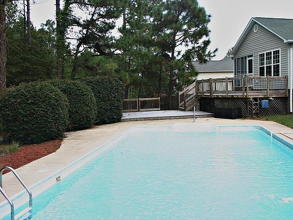 Have your very own private paradise, yet be close to Ft. Bragg and have all Moore County amenities at your fingertips! In-ground pool, fire pit, double-layered composite decking that doesn't need to be painted/stained, fenced yard, screened porch, ultimate privacy. Modern, desirable open floor plan with lofty ceilings, split bedroom design, master with adjacent office/sitting room, light & bright interior. Excellent condition! Grab your bags and move right in. The lifestyle you've always wanted is beckoning you.... Priced to sell