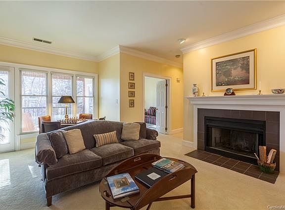The definition of easy living in this pristine, spacious condo on beautiful Queens Road. Park in your covered spot, then take the elevator which opens right outside your front door. One level with 2 beds and 2 baths, including a large owners' suite suitable for a king bed. Owners' bath has double vanity, jetted tub and roomy shower, and two walk-in closets. Great open dining/living space with wood burning fireplace. Kitchen has white cabinetry, Corian solid surface countertops, a breakfast area, and a full-sized laundry room. Living room and the 2nd bedroom (currently used as an office) open to the 108 square foot covered balcony. Downstairs, there's also a 6x6 storage room. HVAC '14, water heater '17. Refrigerator & washer/dryer convey. Welcome home!
