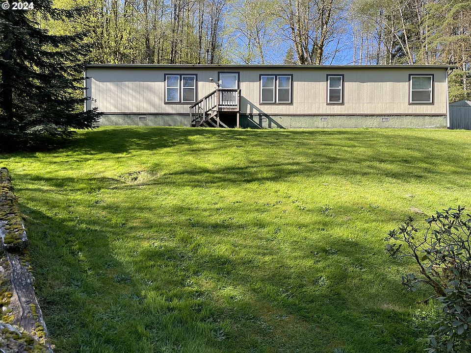 Efficient and affordable manufactured home on almost 6.5 acres! Open floor plan is light and bright with vaulted ceiling and plenty of windows. The kitchen includes an island and walk-in pantry. Dining room has a sliding door which leads to the covered porch. Primary suite has a private bath. Laundry/mud room has extra cabinets and room for storage. Don't let this one pass you by!
